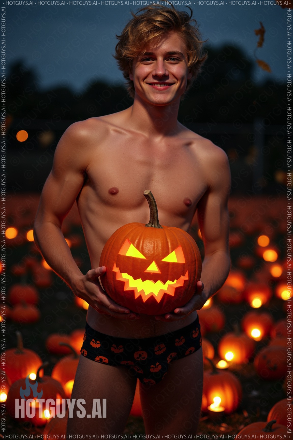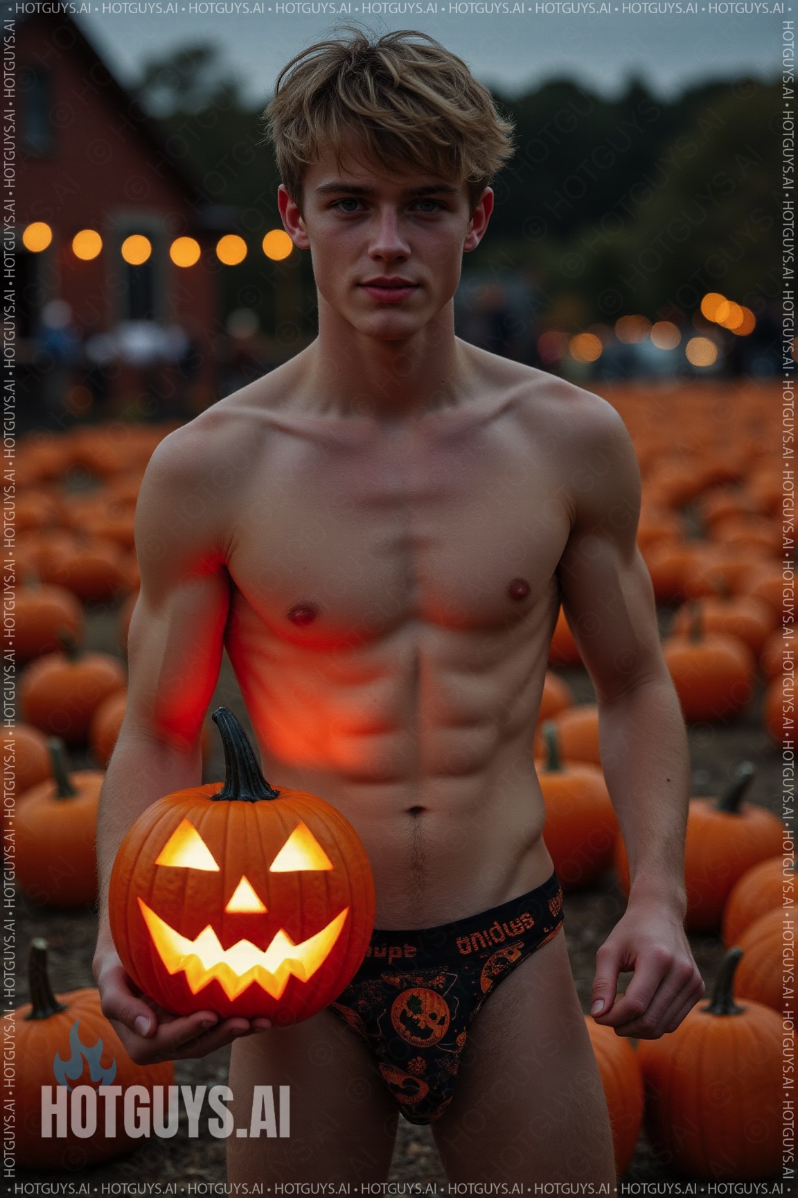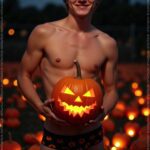 The air smelled like cinnamon and woodsmoke when Jamie stepped into the pumpkin patch at dusk. String lights twinkled overhead, turning every orange globe into a tiny lantern. He’d come straight from the gym—still shirtless, skin glowing from the last rays of sunset—and the cool October breeze made him shiver in the best way.